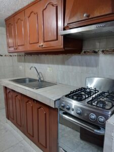 Funcional y bien aprovechada, equipada con mesón, muebles superiores e inferiores, ideal para quienes buscan practicidad y organización.Zona privada